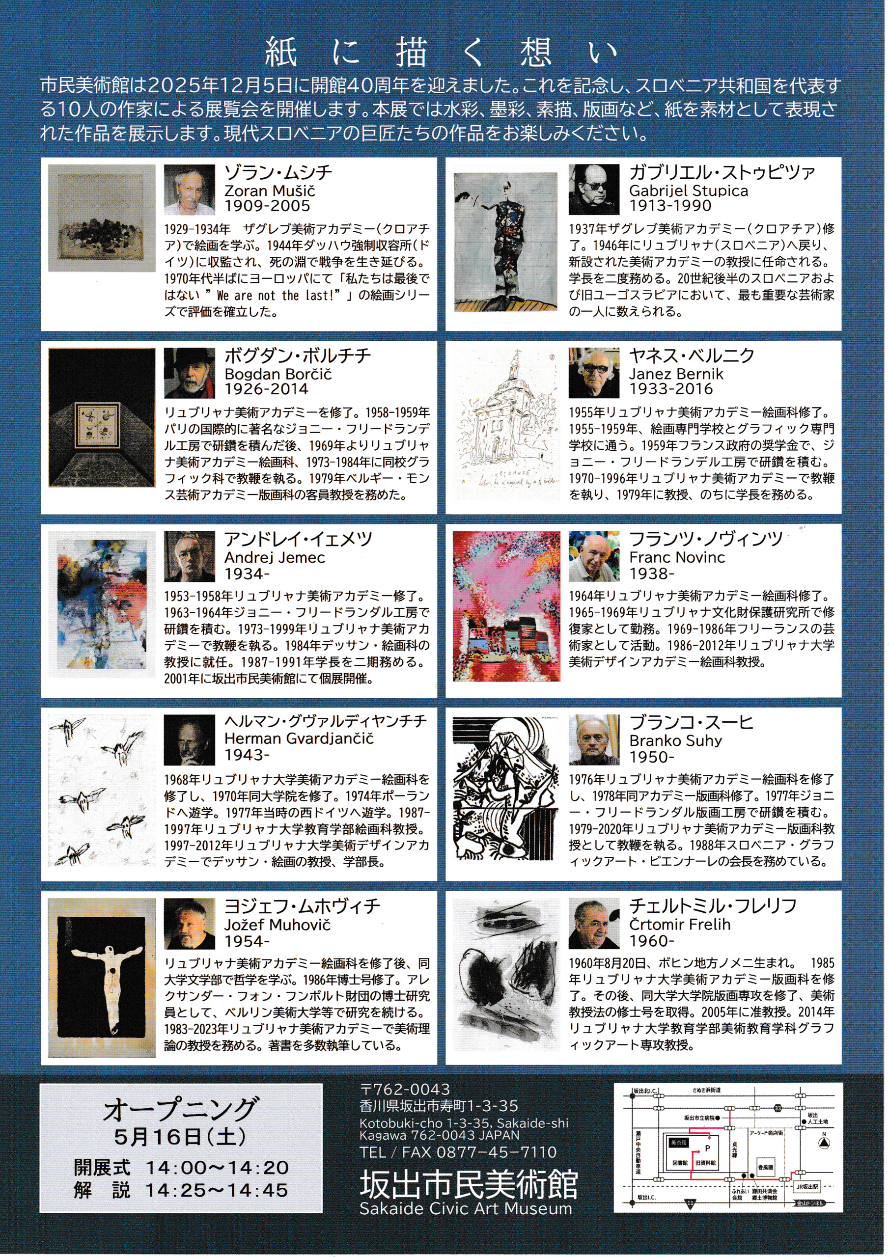 坂出市民美術館は、2025年12月に開館40周年を迎えました。これを記念し、スロベニア共和国を代表する10人の作家による展覧会「スロベニア 10人の巨匠展」を開催します。
